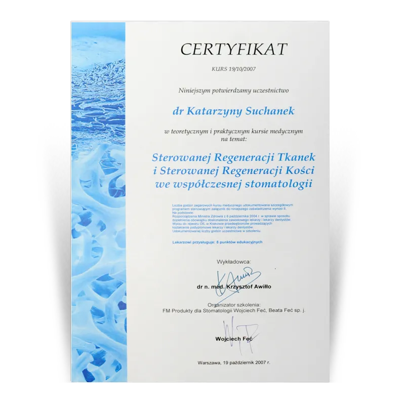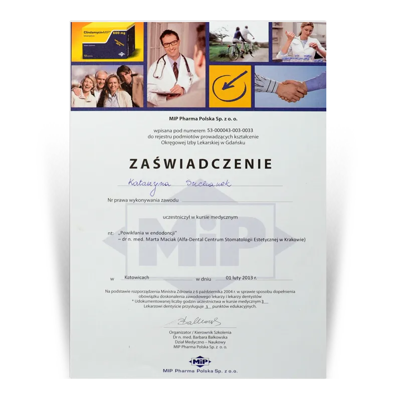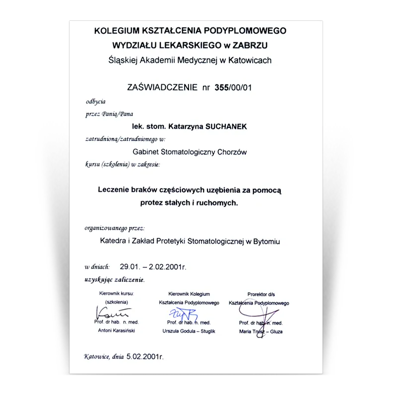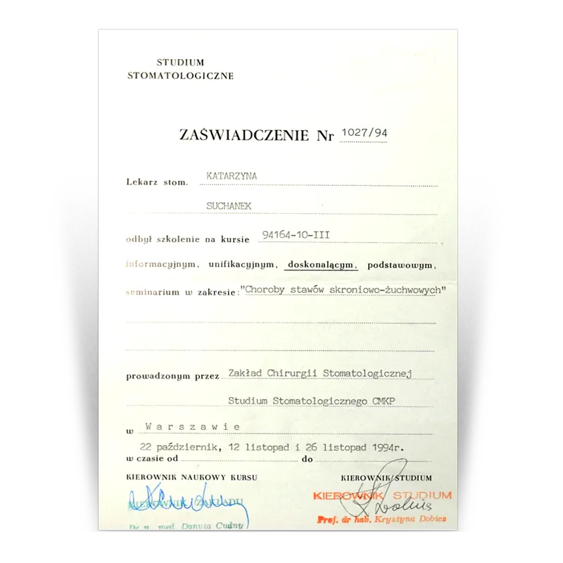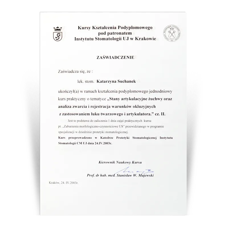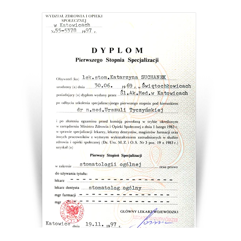 Lekarz dentysta, Specjalista protetykiOd 1993 prowadzi działalność dentystyczną w gabinetach stomatologicznych Dental Team. Po wielu szkoleniach w 2003 uzyskała tytuł Specjalisty Protetyki II stopnia. W ciągu ponad 30 lat pracy zdobyła doświadczenie w różnych dziedzinach stomatologii. Jednak protetyka stomatologiczna to jej pasja, przygoda i wyzwanie. Zebrana latami wiedza i doświadczenie oraz kooperacja z najlepszymi lekarzami w innych dziedzinach stomatologii (endodoncji, chirurgii i implantologii) pozwala jej na zaplanowanie i wykonywanie prac protetycznych zgodnie ze sztuką.