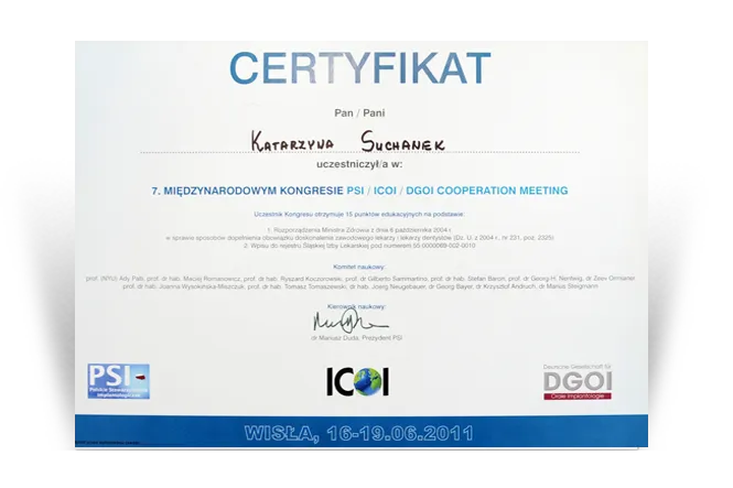 Bardzo ceni sobie współpracę z zaufanymi laboratoriami dentystycznymi i technikami, którzy tworzą solidne, estetyczne i przede wszystkim wygodne odbudowy protetyczne. Jest orędowniczką pracy zespołowej. Zaskoczenie, wzruszenie i niedowierzanie Pacjentów gdy widzą się w lustrze z nowym pięknym uśmiechem to dla niej największa nagroda.